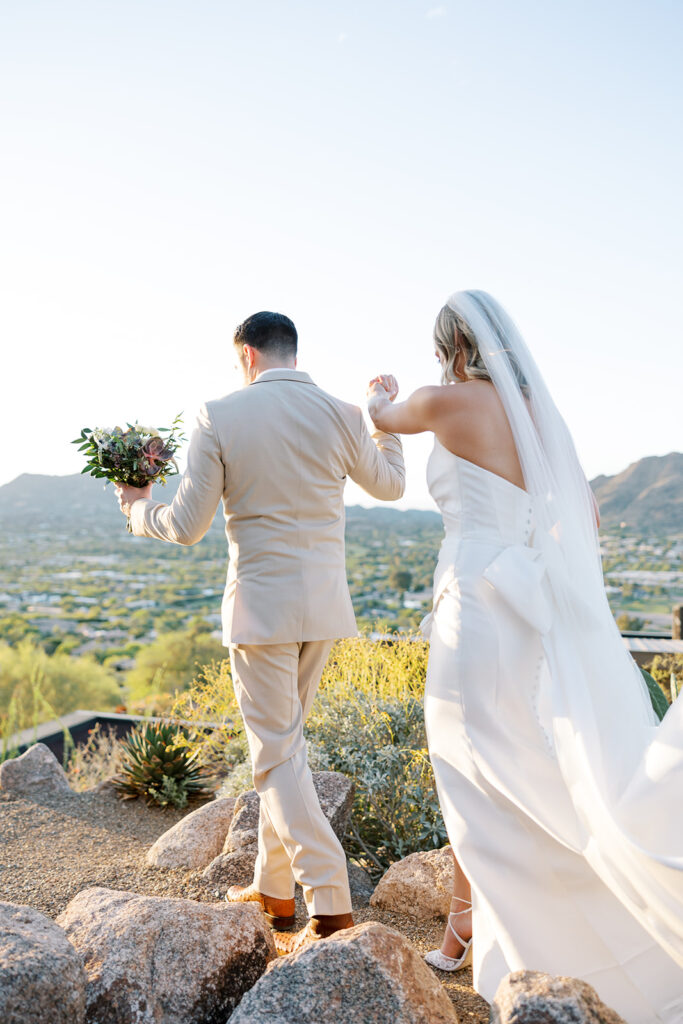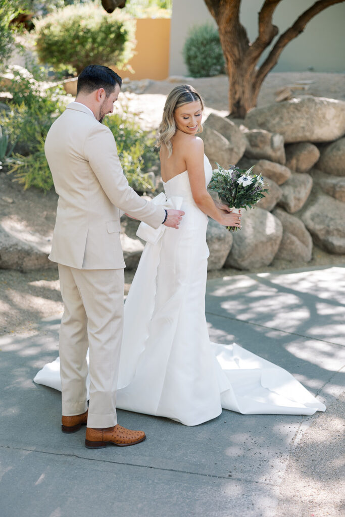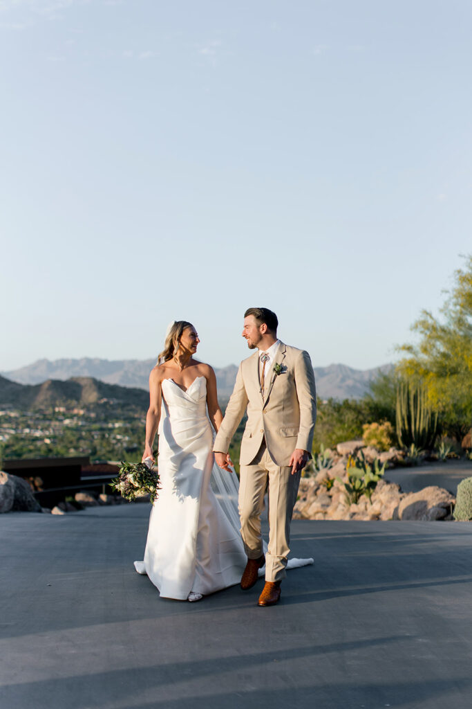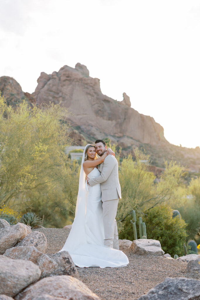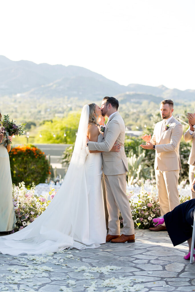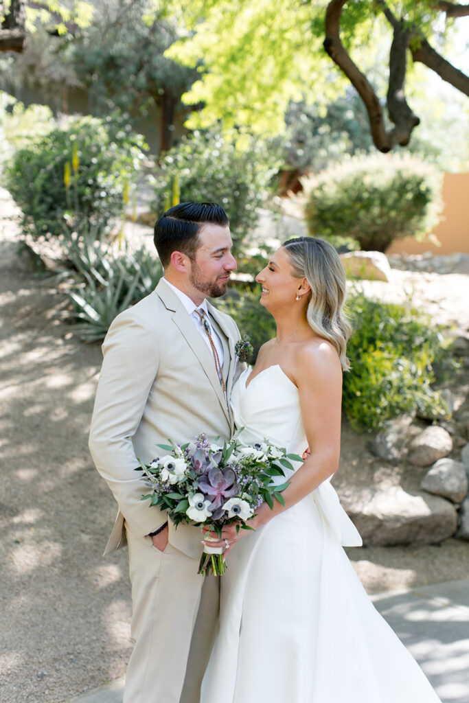 Cat and Danny’s wedding at Sanctuary Camelback Mountain was a fresh take on desert romance, blending soft lavender and lush greens with a distinct western flair. From the very first detail, desert-inspired invitations hinting at the landscape to come, guests were immersed in a design that felt both elevated and deeply personal.