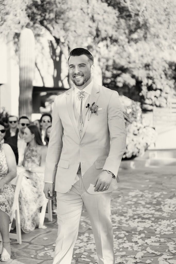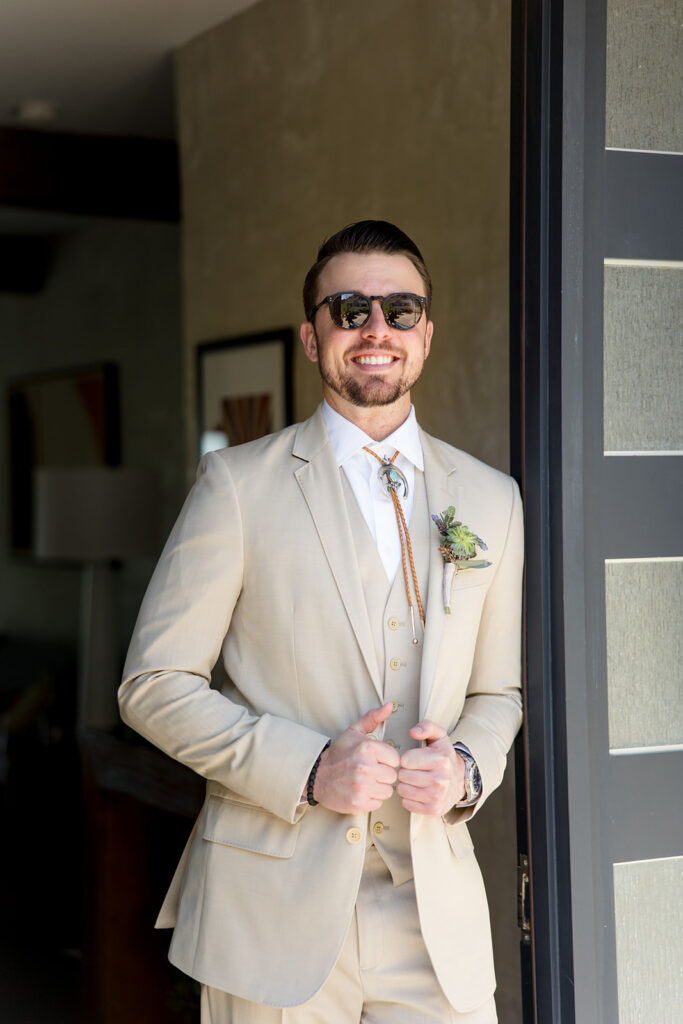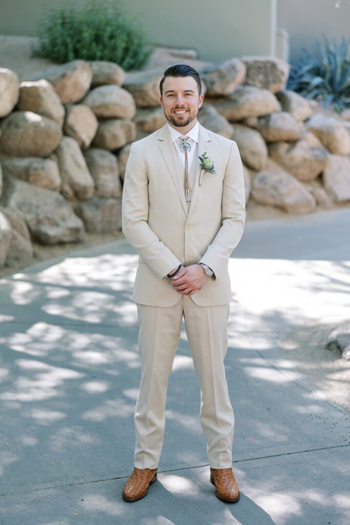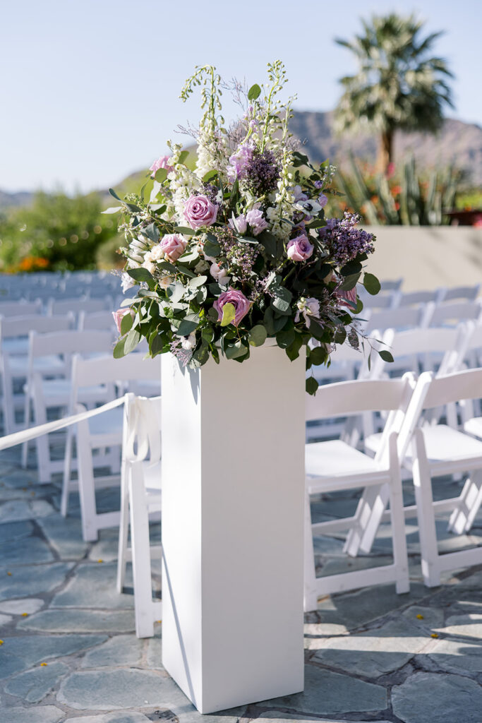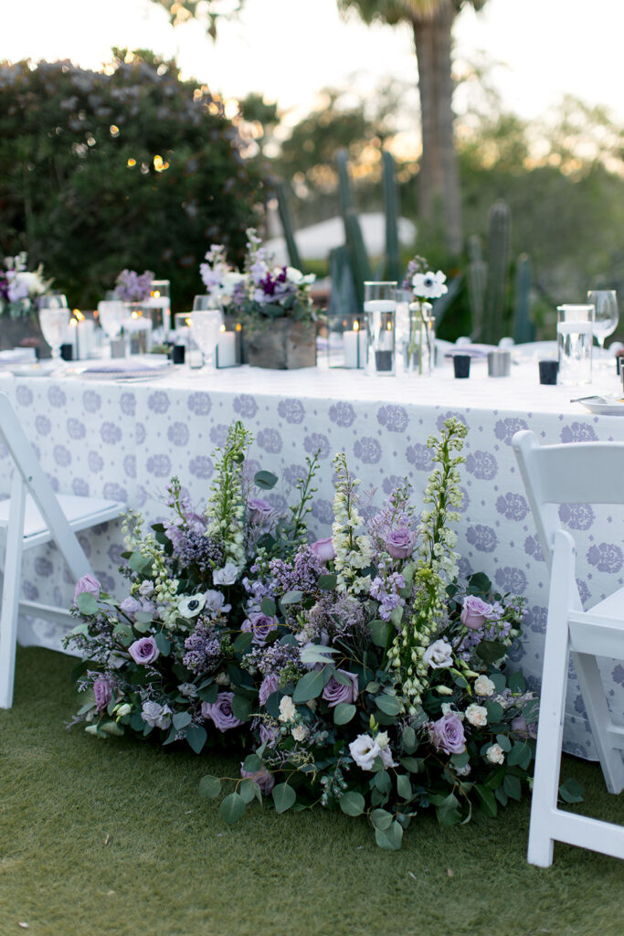 Touches of the Southwest were woven throughout, from bolo ties that added a playful nod to tradition to thoughtfully layered textures that brought warmth and depth to every space. The florals were especially striking, combining succulents with vibrant blooms for a look that felt organic yet artful, with pops of color that stood beautifully against the natural desert backdrop.