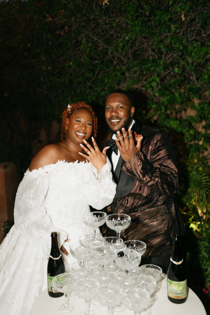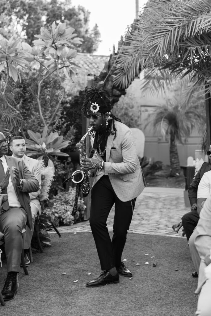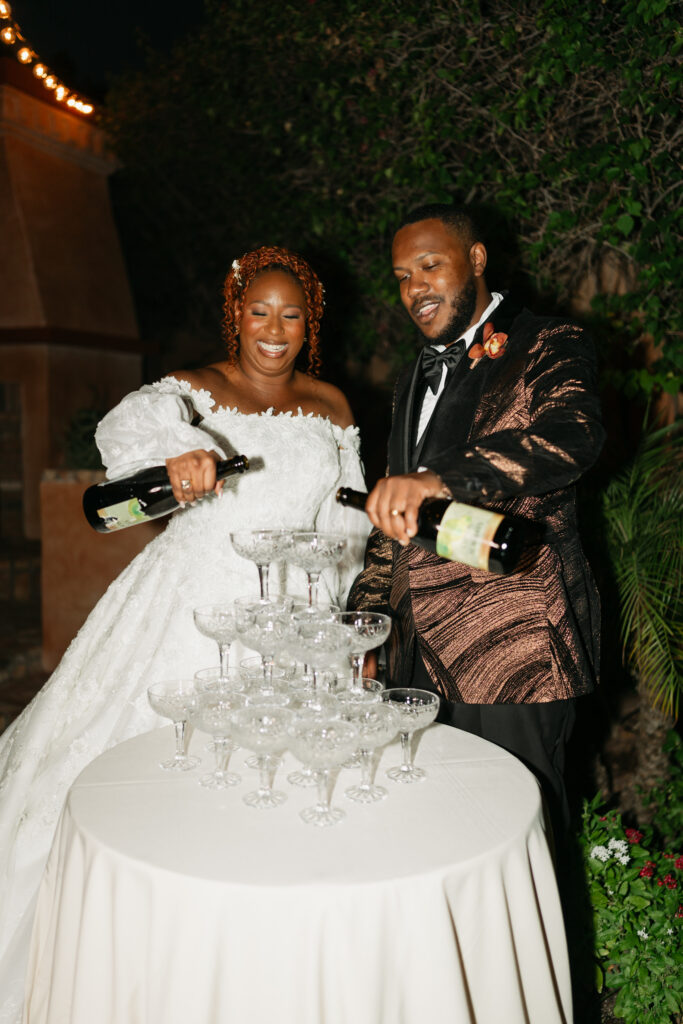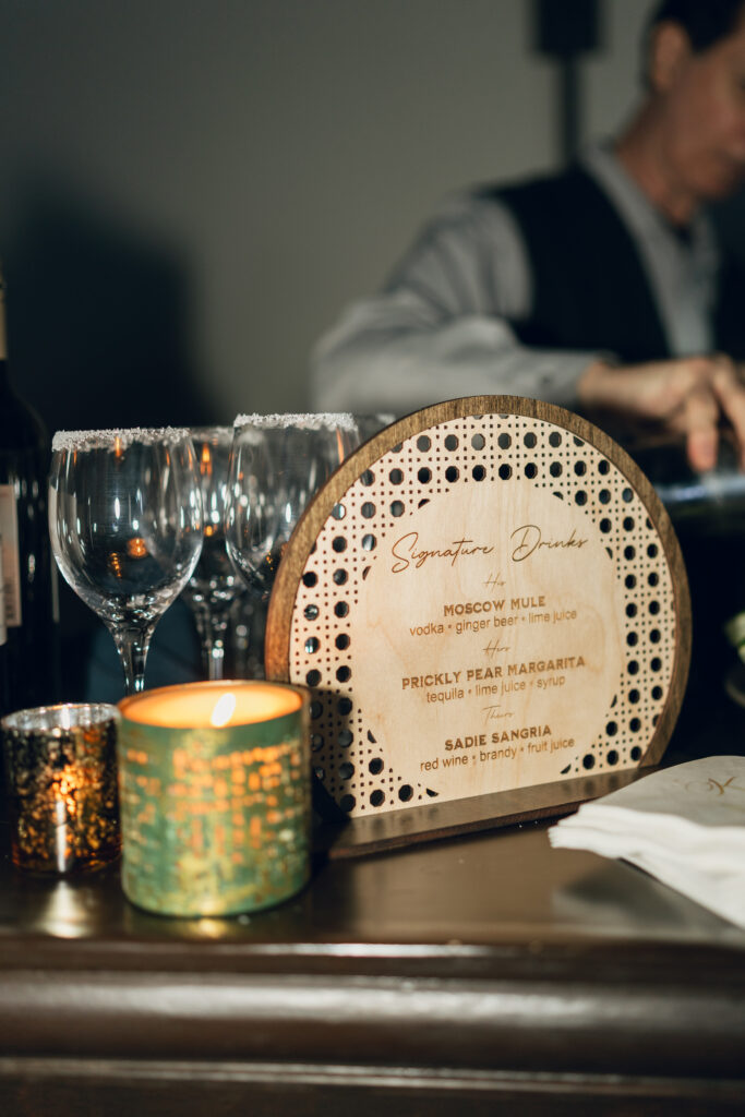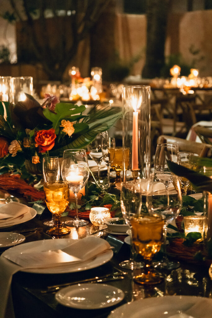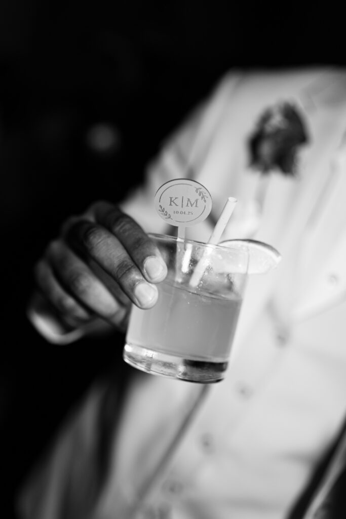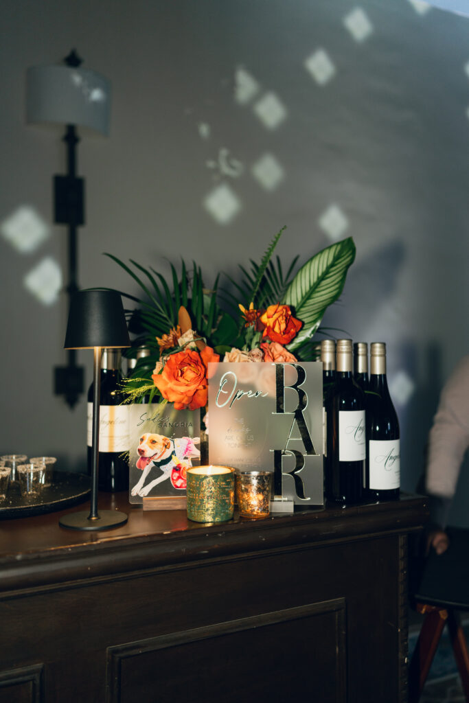 The day overflowed with meaningful highlights, but a few moments truly stood out. Kayaya wowed guests with two custom gowns made in Turkey, each stunning in its own way. Her main ceremony gown was a beautiful off-the-shoulder ballgown, while her dancing gown was a sleek, sexy floor-length fitted masterpiece. Another favorite is when Meshach surprised her with a mariachi band, a sweet nod to the surprise he planned the day after their Costa Rica proposal, and the joy on her face as the music started while she took photos with her bridesmaids was unforgettable. And of course, their four-legged family member made a subtle, adorable appearance through the “Sadie Sangria” signature cocktail, a guest favorite and the perfect personal touch. – Lead Planner Natori