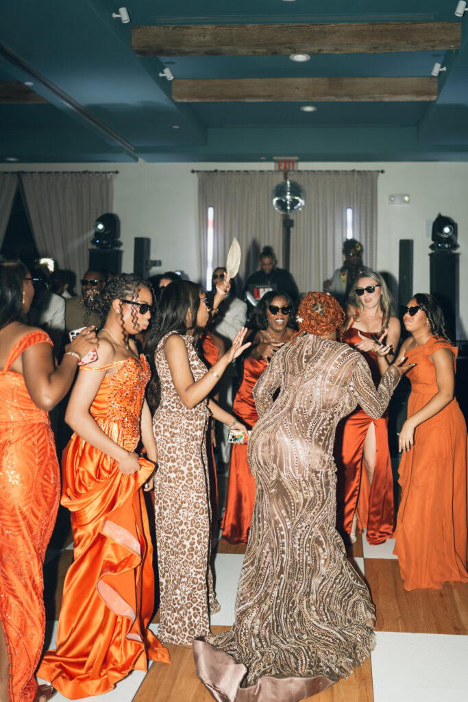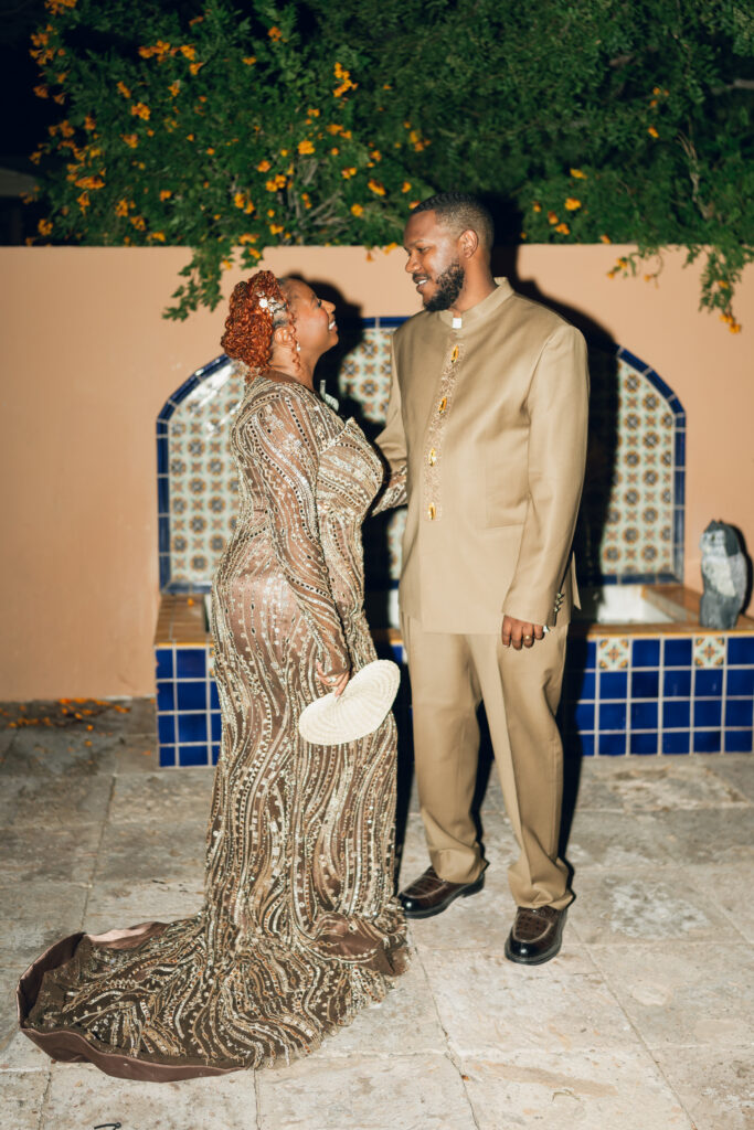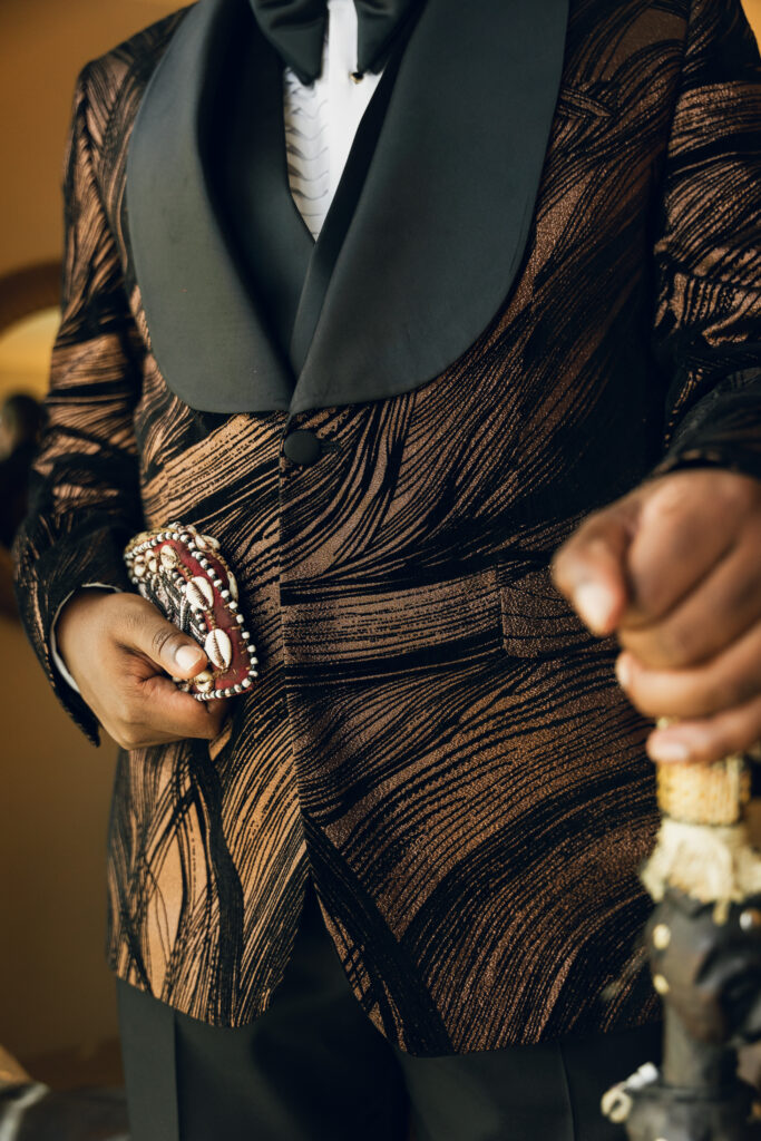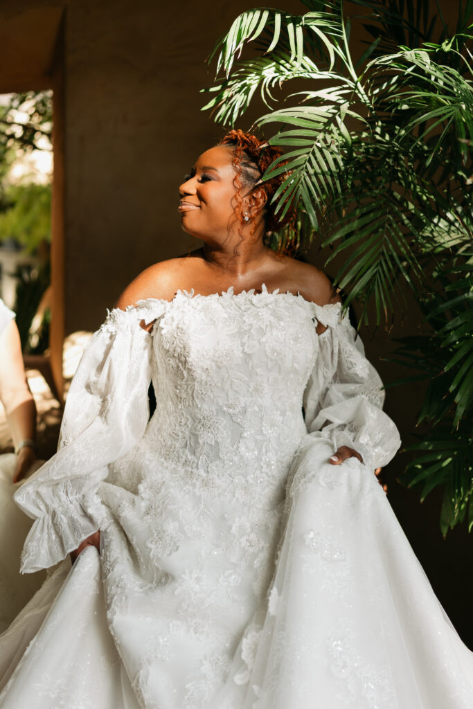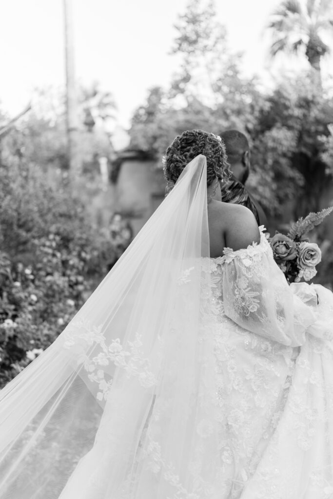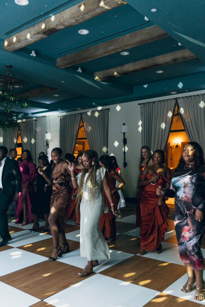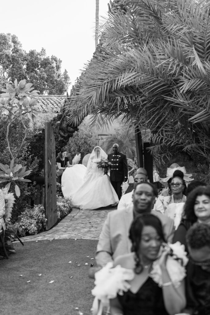 The day overflowed with meaningful highlights, but a few moments truly stood out. Kayaya wowed guests with two custom gowns made in Turkey, each stunning in its own way. Her main ceremony gown was a beautiful off-the-shoulder ballgown, while her dancing gown was a sleek, sexy floor-length fitted masterpiece. Another favorite is when Meshach surprised her with a mariachi band, a sweet nod to the surprise he planned the day after their Costa Rica proposal, and the joy on her face as the music started while she took photos with her bridesmaids was unforgettable. And of course, their four-legged family member made a subtle, adorable appearance through the “Sadie Sangria” signature cocktail, a guest favorite and the perfect personal touch. – Lead Planner Natori