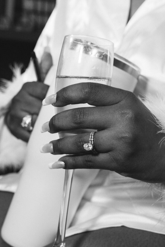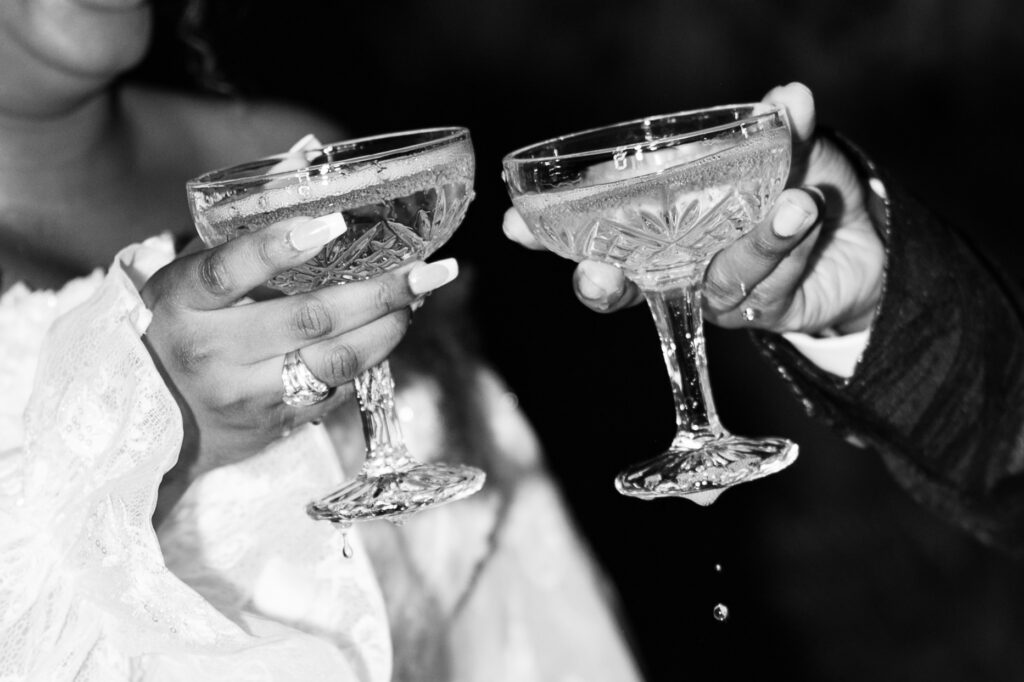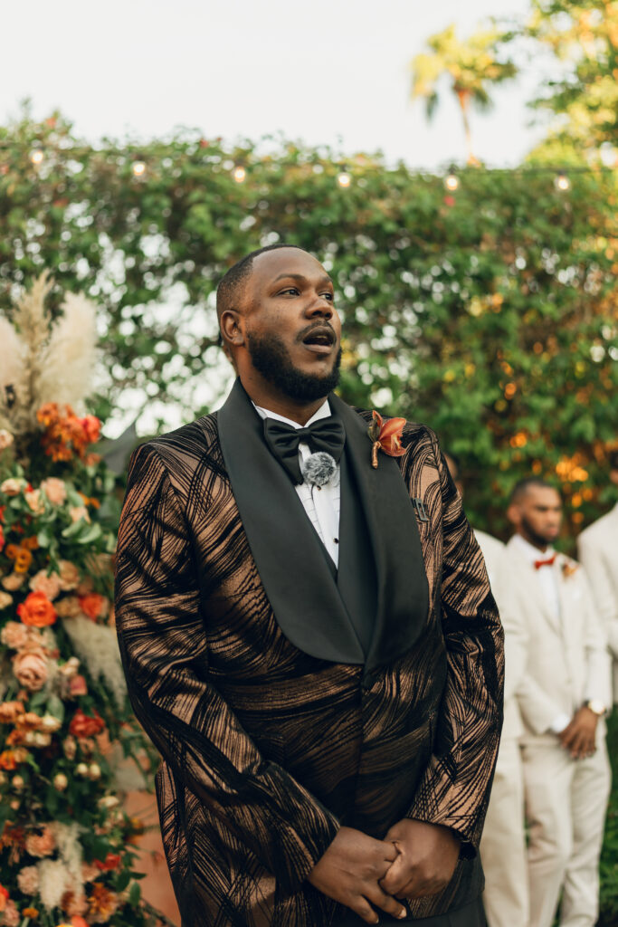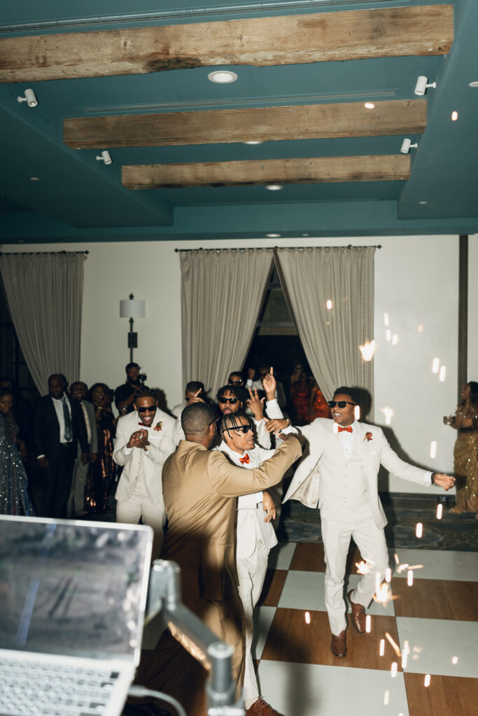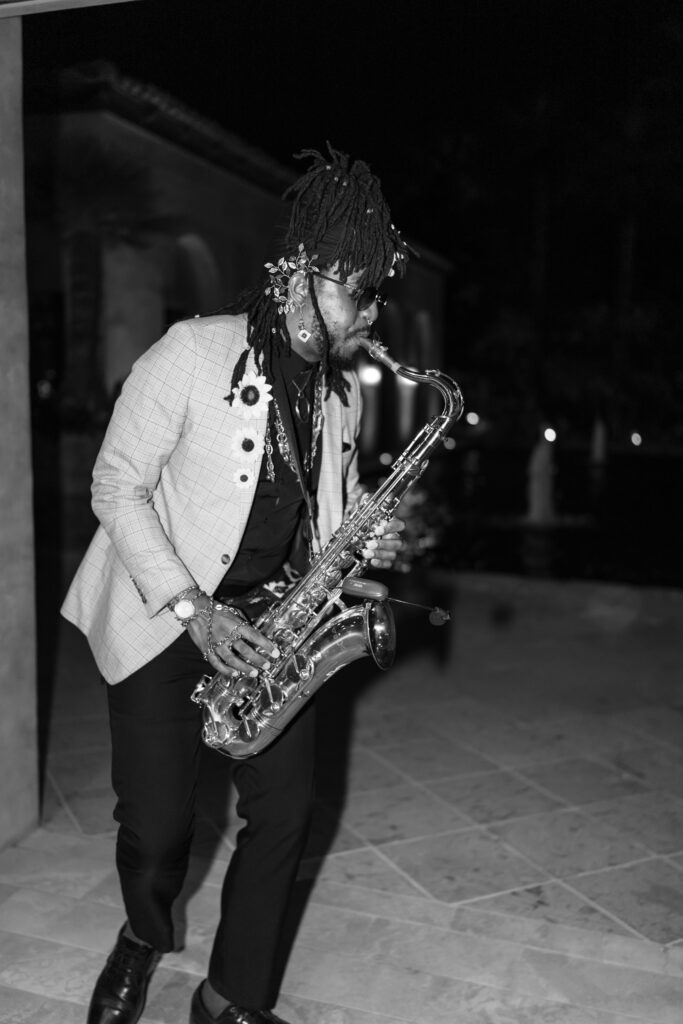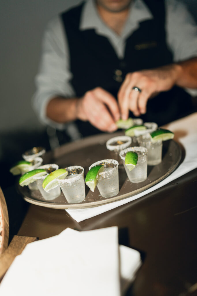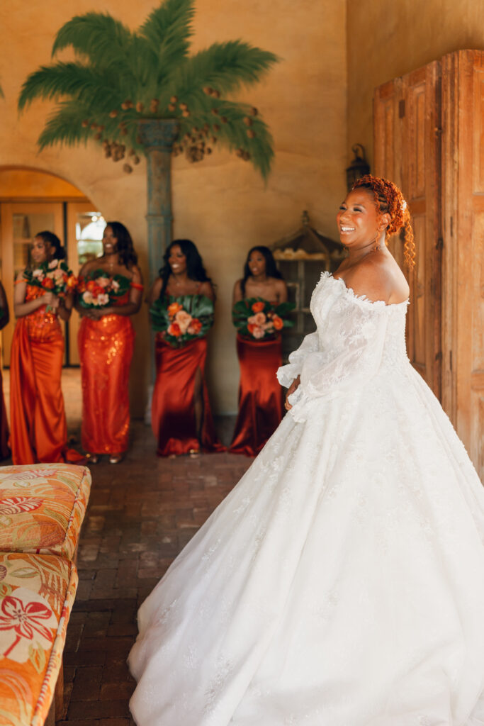 The day overflowed with meaningful highlights, but a few moments truly stood out. Kayaya wowed guests with two custom gowns made in Turkey, each stunning in its own way. Her main ceremony gown was a beautiful off-the-shoulder ballgown, while her dancing gown was a sleek, sexy floor-length fitted masterpiece. Another favorite is when Meshach surprised her with a mariachi band, a sweet nod to the surprise he planned the day after their Costa Rica proposal, and the joy on her face as the music started while she took photos with her bridesmaids was unforgettable. And of course, their four-legged family member made a subtle, adorable appearance through the “Sadie Sangria” signature cocktail, a guest favorite and the perfect personal touch. – Lead Planner Natori
