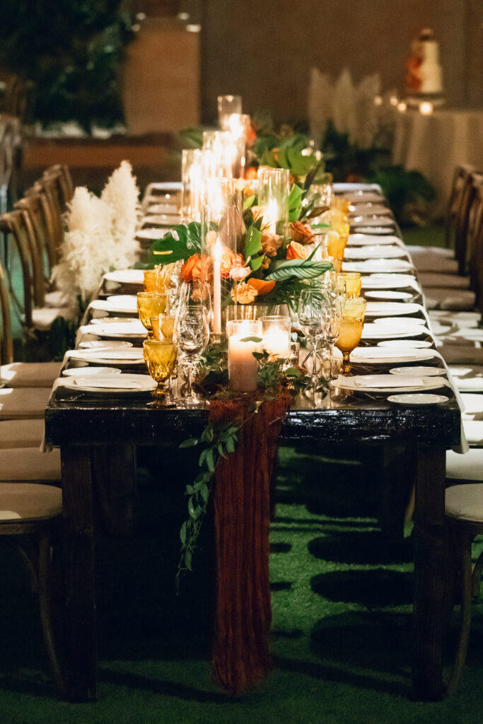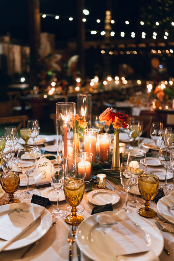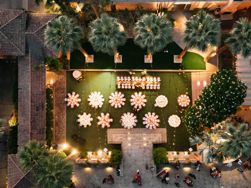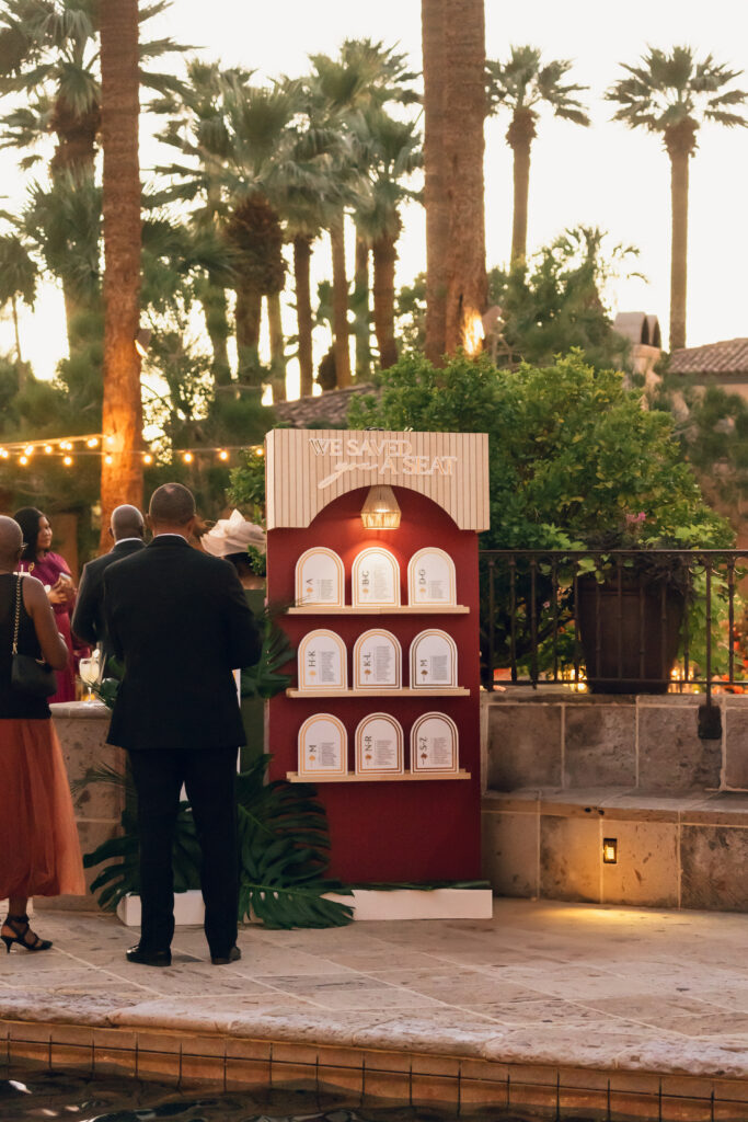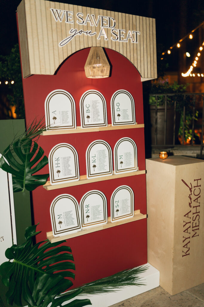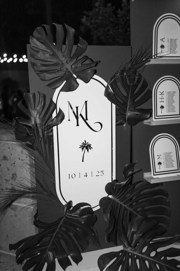 Designing this experience was such a fun creative process. The real palms incorporated into the seating chart and suspended above the dance floor became instant showstoppers and truly transformed the space. And because an unforgettable party was always top priority, the celebration delivered beyond expectations. The Sunflower King filled the day with soulful, heartfelt music, and DJ Mixed Kid kept the checkered dance floor packed until 1:30 AM. Everything about the night felt vibrant, intentional, and completely true to them.
