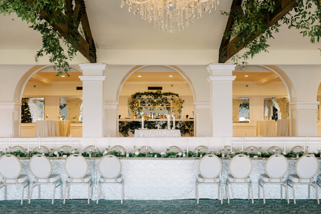 Then came the wedding day: a chic, classic, forever-timeless design. Crisp whites and greens complemented the historic beauty of Wrigley Mansion, creating a look she knew sheād still swoon over decades from now. Understated, elegant, and beautifully intentional, exactly what she wanted.